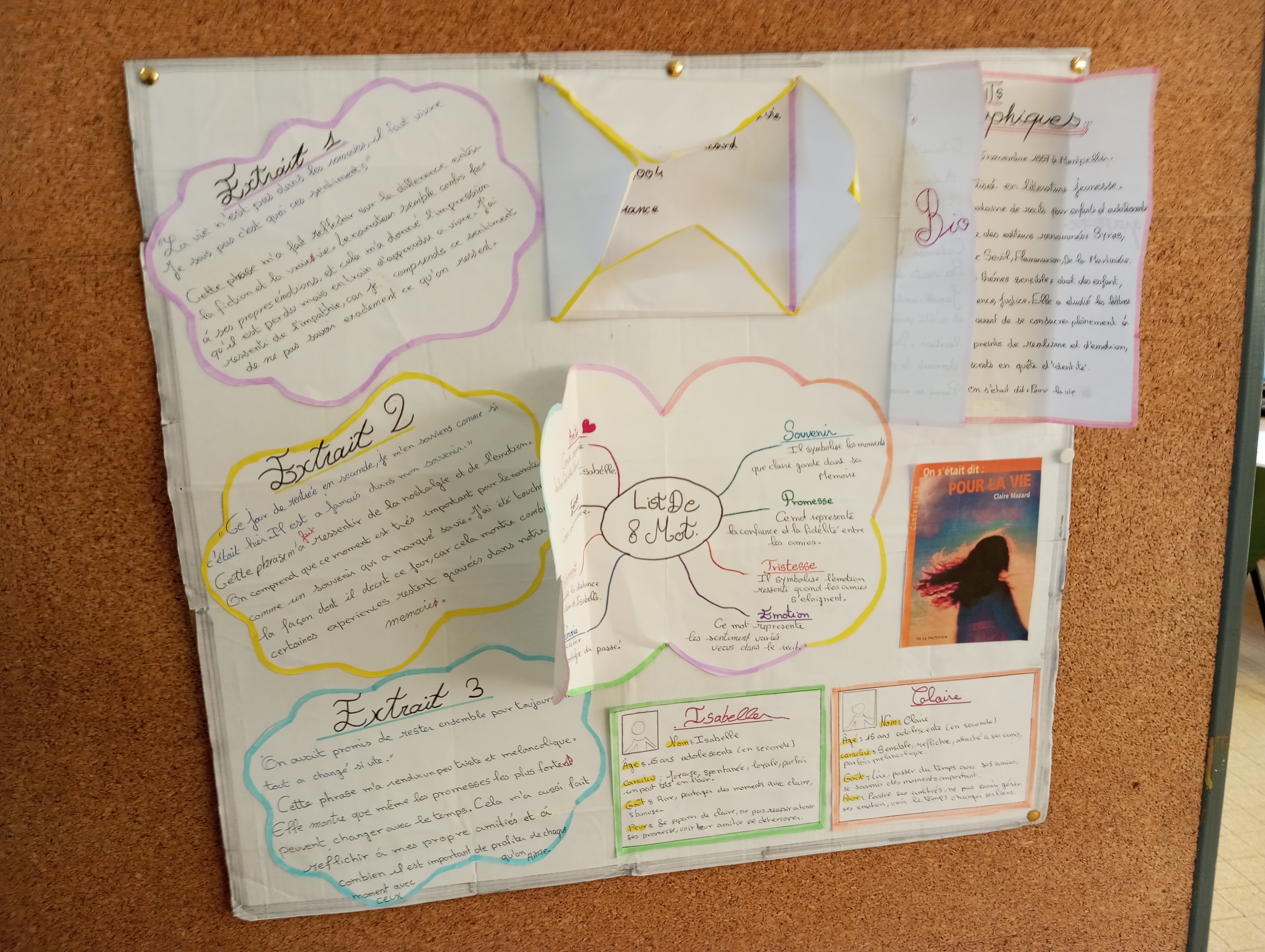 Il s'agissait de restituer la lecture d'un récit de vie, à travers le support de son choix : lapbook, livres, objets, carte mentale... Les élèves ont apprécié cette activité et l'ont réalisée avec beaucoup de sérieux.